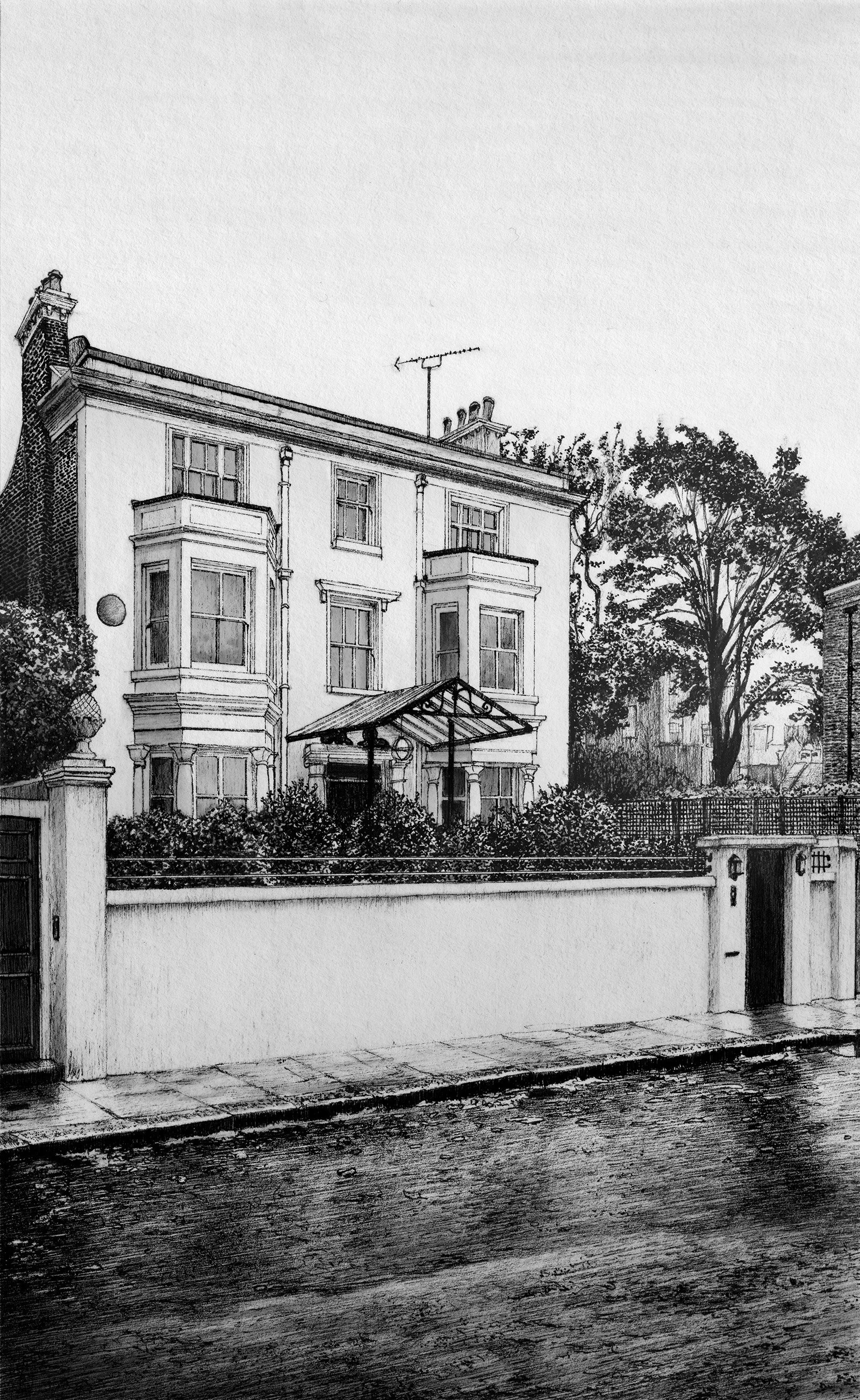 Atmospheric hand-drawn images depicting architectural moments.